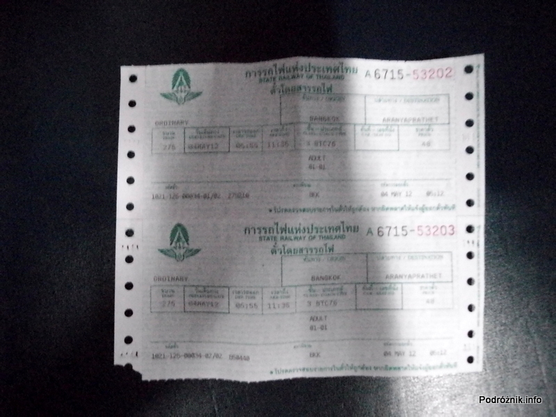 Tajlandia – maj 2012 – bilet Bangkok-Aranyaprathet