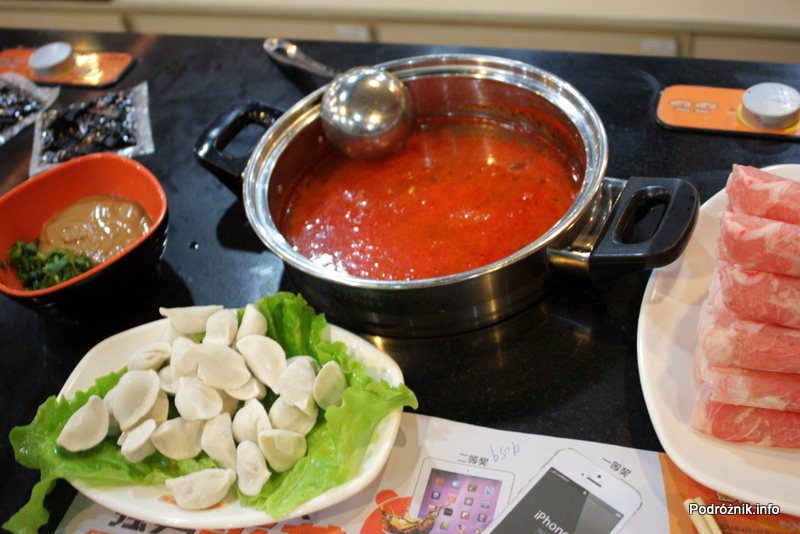 Chiny - Pekin - czerwona pikantna zupa oraz malutkie pierożki i cieniutkie plasterki jagnięciny - kwiecień 2013