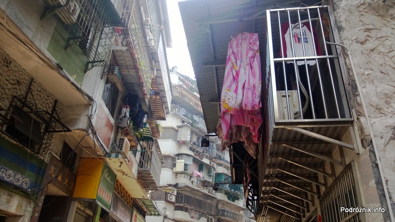 Chiny – Makao – pranie wywieszone do wysuszenia nad ulicą – kwiecień 2013