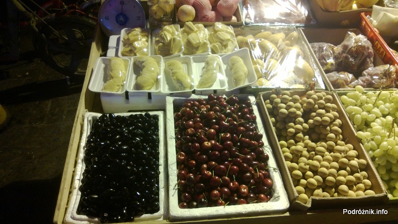 Chiny – Pekin – okolice dworca kolejowego Dongzhimen – stragan z owocami – kwiecień 2013