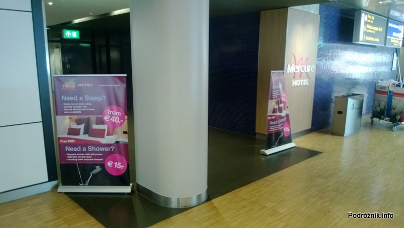 Holandia – Lotnisko w Amsterdamie – Amsterdam Airport Schiphol – KLM Crown Lounge – banery z cenami w lotniskowym Mercure Hotel – kwiecień 2013