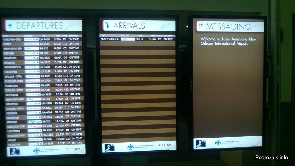 USA – Lotnisko w Nowym Orleanie (Louis Armstrong New Orleans International Airport MSY) – tablica odlotów – czerwiec 2013