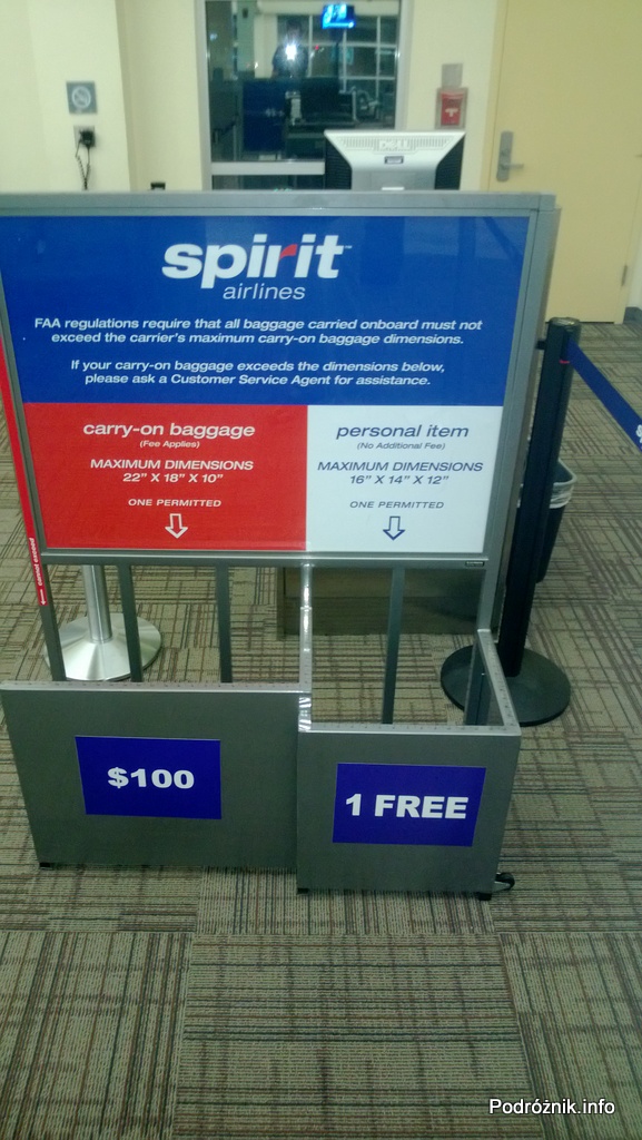 USA – Lotnisko w Nowym Orleanie (Louis Armstrong New Orleans International Airport MSY) – skrzynki do pomiaru bagażu Spirit Airlines – czerwiec 2013