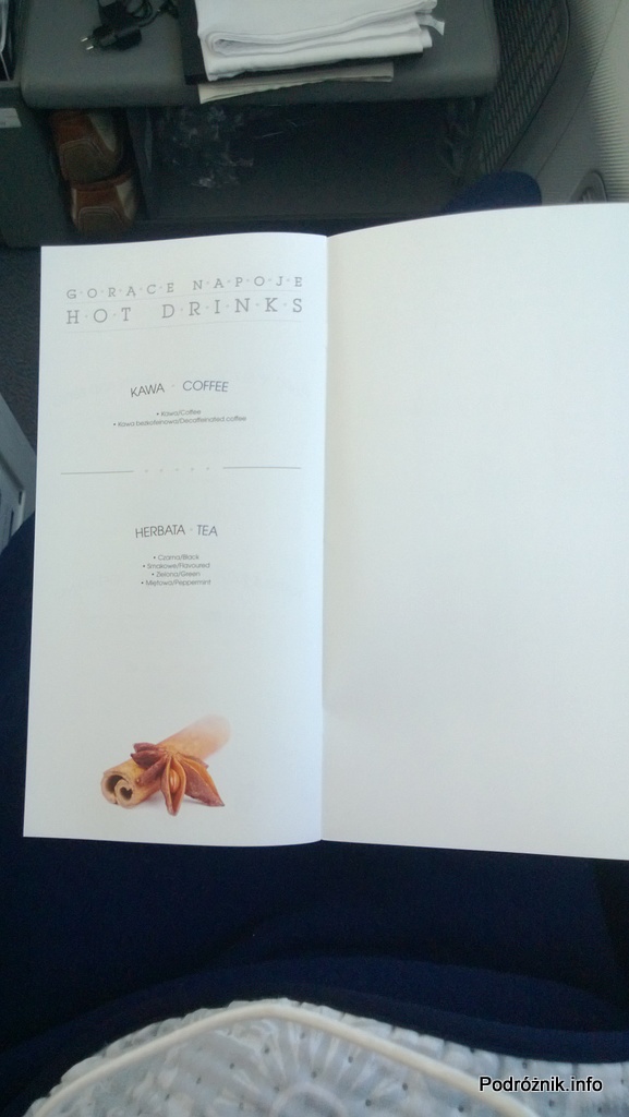 Polskie Linie Lotnicze LOT - Boeing 787 Dreamliner (SP-LRA) - Klasa Biznes (Elite Club) - gorące napoje - czerwiec 2013