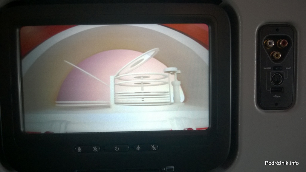 Virgin Atlantic (VS) – Airbus A330 – G-VWAG (Miss England) – wnętrze – ekran systemu rozrywki pokładowej – maj 2014